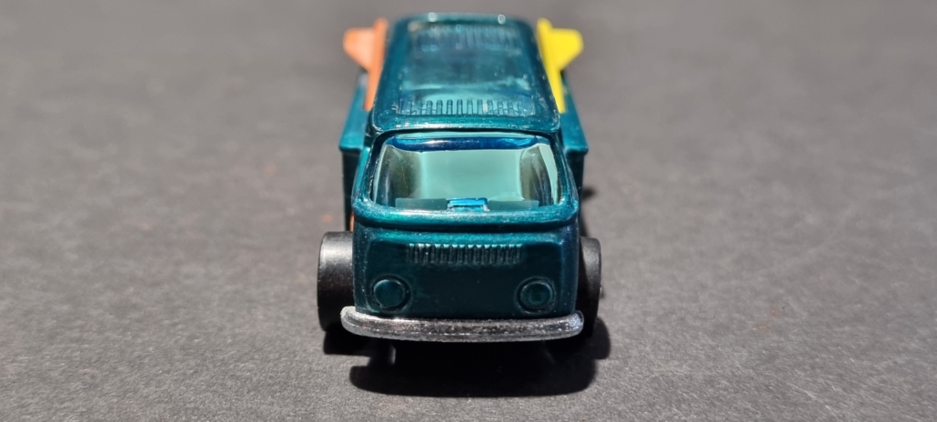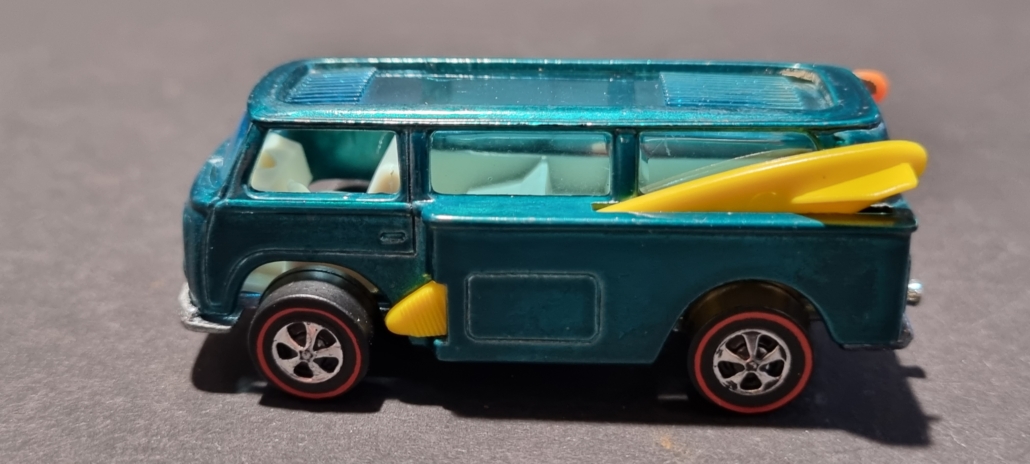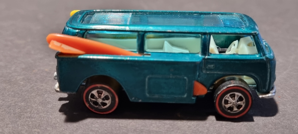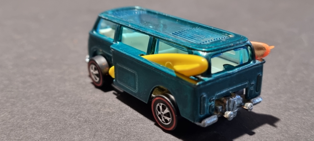| Besonderheiten | Die Beach Bomb war ursprünglich ein Modell, das für den Hot Wheels Katalog von 1969 produziert wurde. Es war eines der ersten Modelle, das den „Hippie“-Vibe und die Surfkultur thematisierte, die in den 60ern sehr populär waren. Es wurde als eines der besten Designs der damaligen Zeit angesehen. Besonders sehr frühe Modelle der Beach Bomb, die noch nicht im Detail nachbearbeitet wurden, sind extrem selten und wertvoll. Die Beach Bomb war ein echtes Testmodell, das ursprünglich nicht die endgültige Form der Hot Wheels-Fahrzeuge hatte. Die ersten Versionen mit den Surfboards auf dem Dach wurden schnell eingestellt, weil sie Schwierigkeiten hatten, korrekt über die Hot Wheels-Rennstrecken zu rollen. Daher sind die frühen Modelle mit den Surfboards umso begehrter und wertvoller. Einige Varianten des Beach Bomb-Modells wurden mit und ohne Surfboards produziert, und der Preis variiert stark je nach den Details und Zustand des Modells.Und es gibt 2 pinke Beach Bombs, deren Wert aktuell bei ca. 175.000 Euro liegt! |
