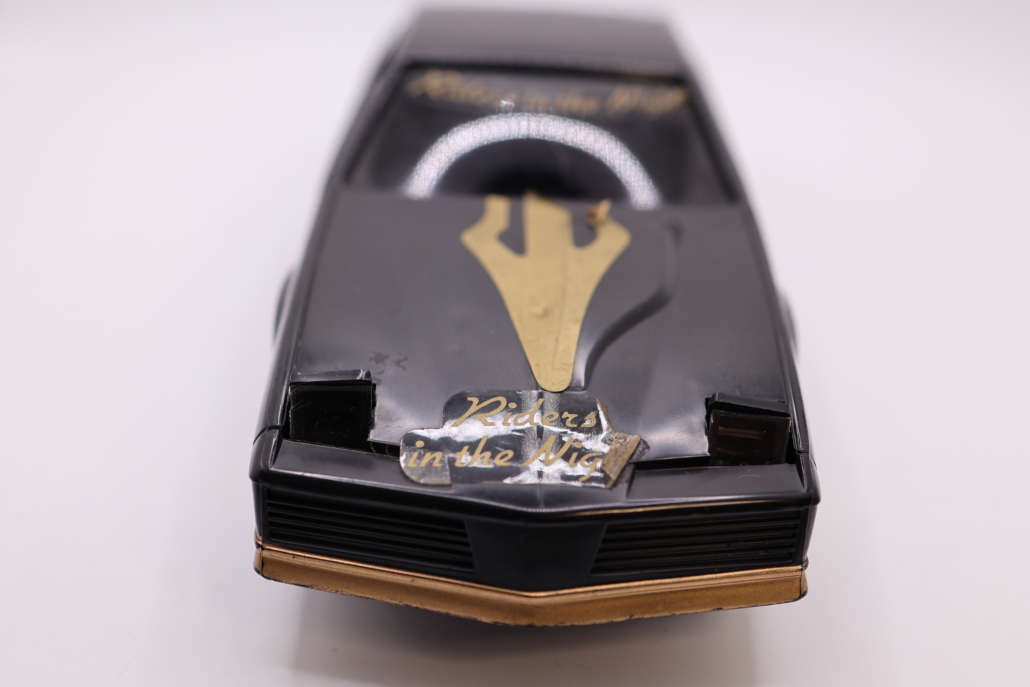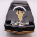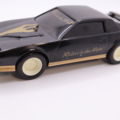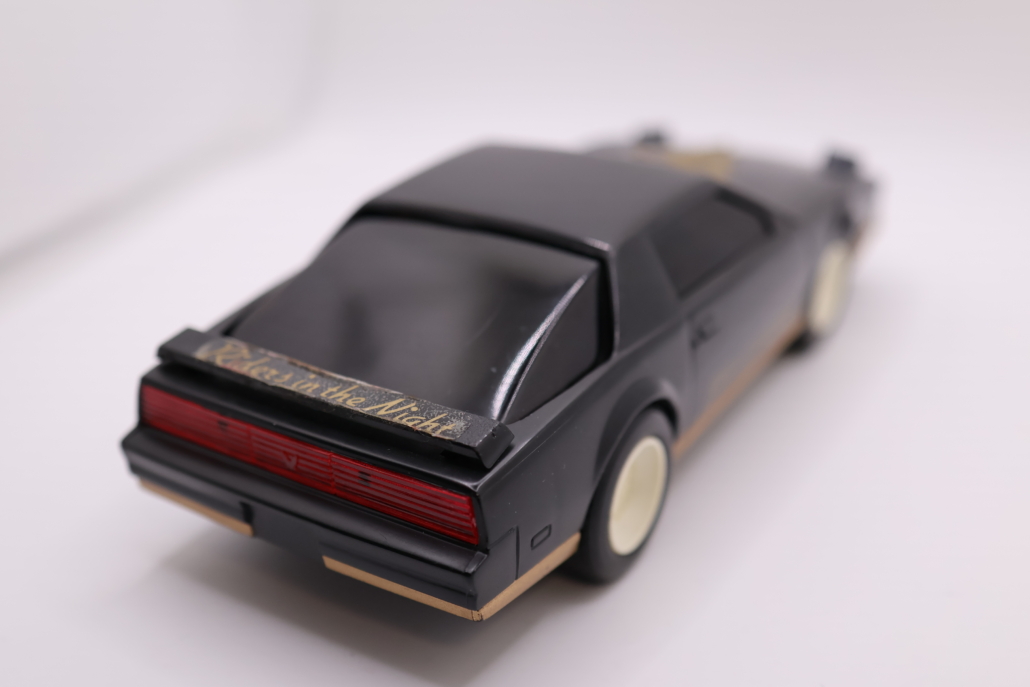 Schwarzer Pontiac Firebird KITT-Look mit goldenen Aufklebern.