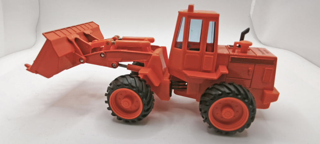 Die Markierung “Thomae” weist auf die frühere Arzneimittelsparte hin und das Modell müsste damit aus den 80er Jahren sein, dafür spricht auch die alte Postleitzahl unter dem Radlader. Diese alten PLZ galten bis 1993.